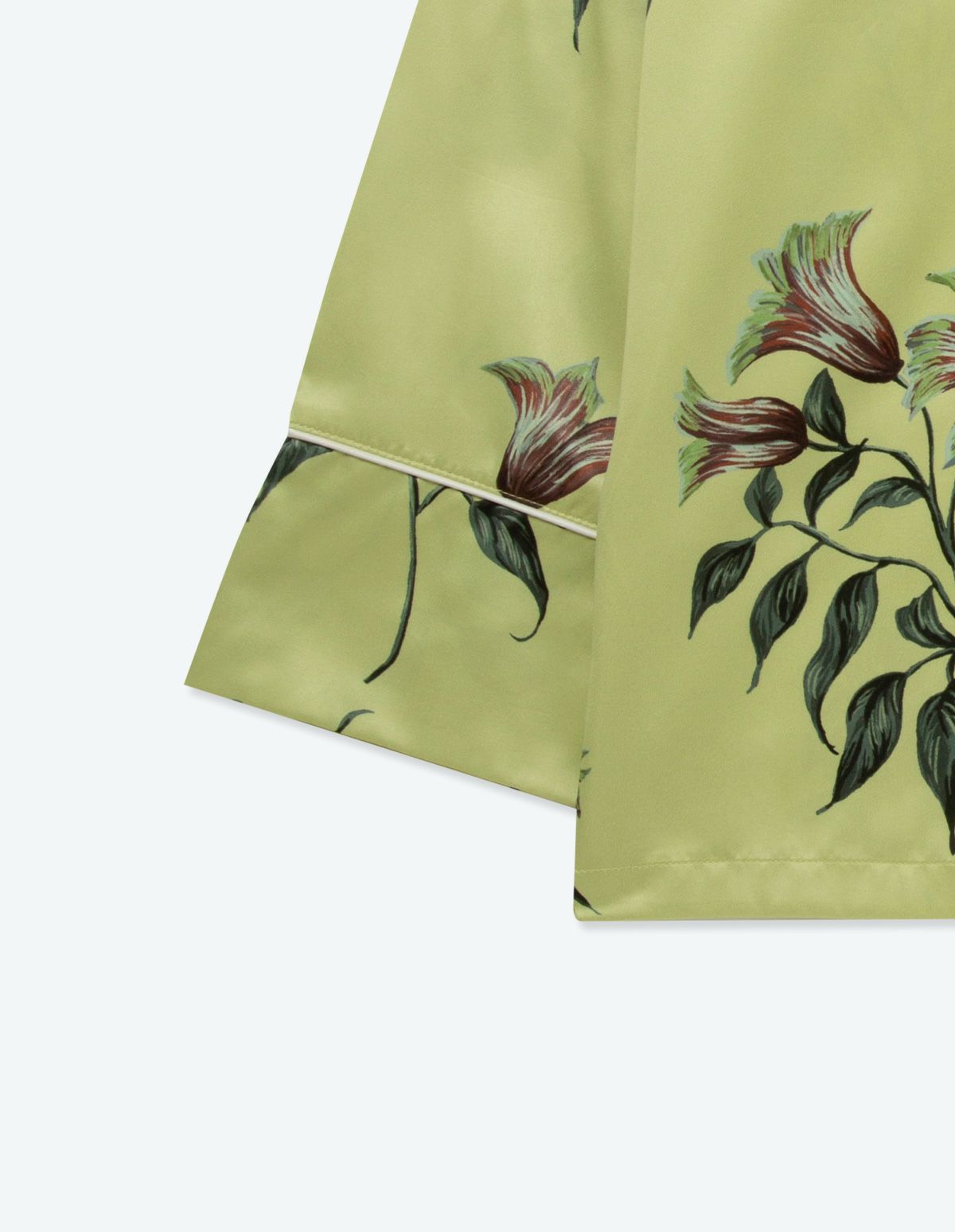 ペチュニアフラワーをモチーフにした細やかな描写のフラワープリントパジャマセット。 繊細かつ大胆な花柄は特別感のあるカラー展開で、落ち感のある生地とゆったりとしたワイドシルエット、微光沢のサテン生地との掛け合わせで高級感のある印象に仕上げました。ギフトとしても映えるフラワープリントされたBOXとのセットで特別なギフトシーズンを彩ります。