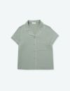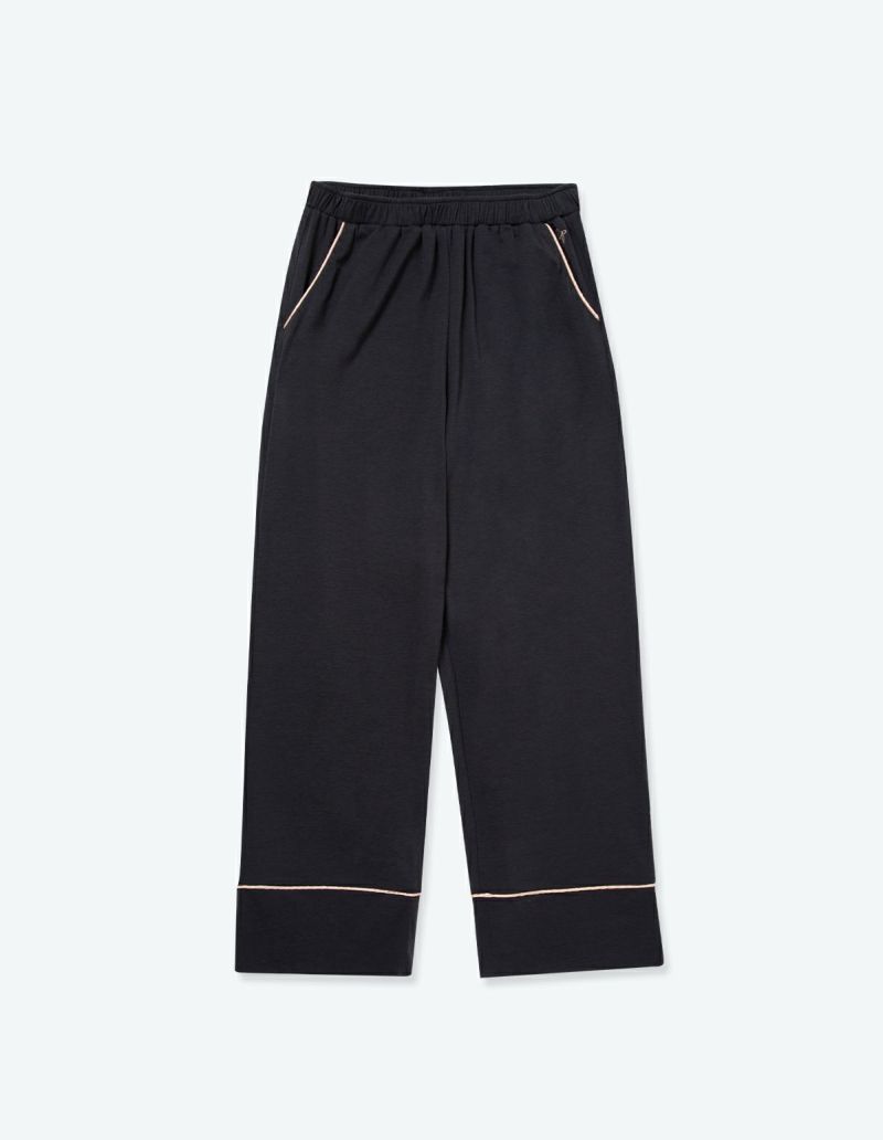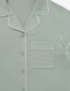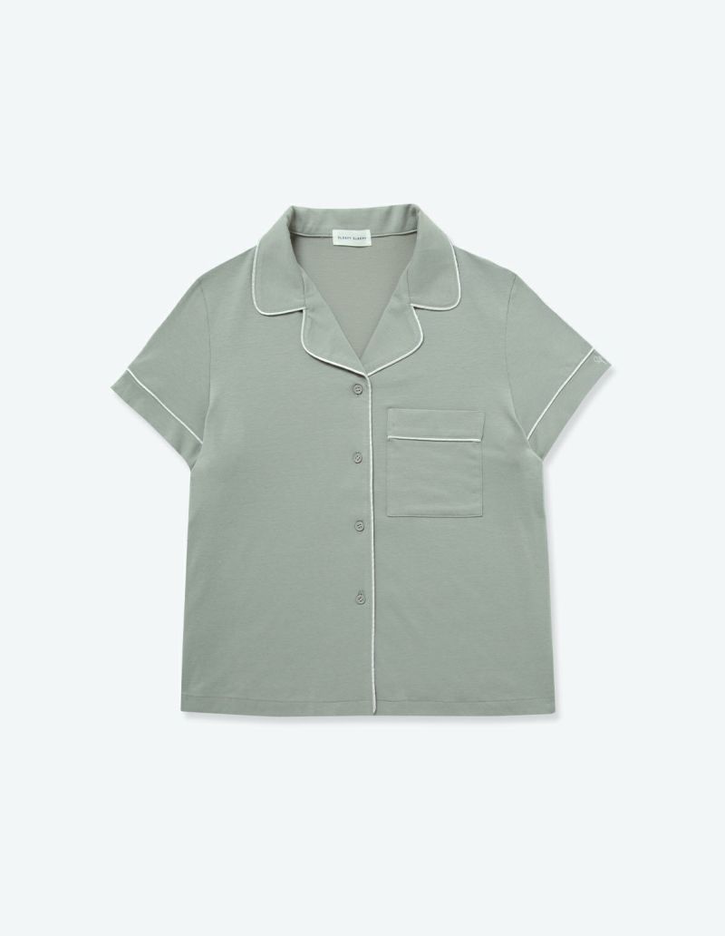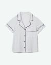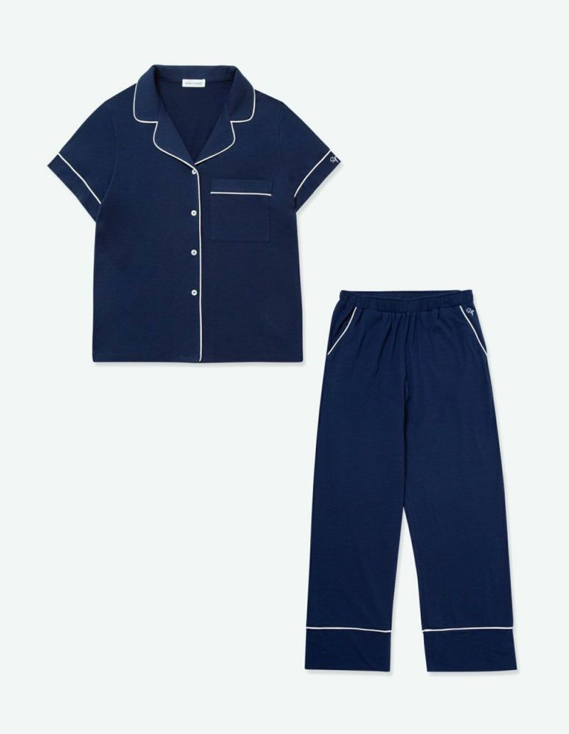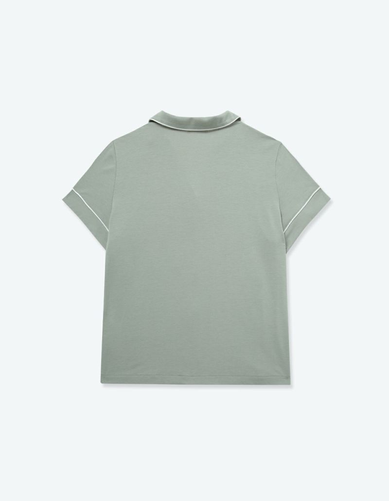 柔らかくストレッチ性のある綿混の半袖とロングパンツのパジャマセット。 薄手の生地で落ち感がありすっきりとしたシルエット。深めのVネックは首元・胸元のシルエットを美しく演出します。アームにゆとりがあり斜めに入る袖口で腕周りもスッキリ細見え効果も。ニュアンスカラーのパッケージ入り。