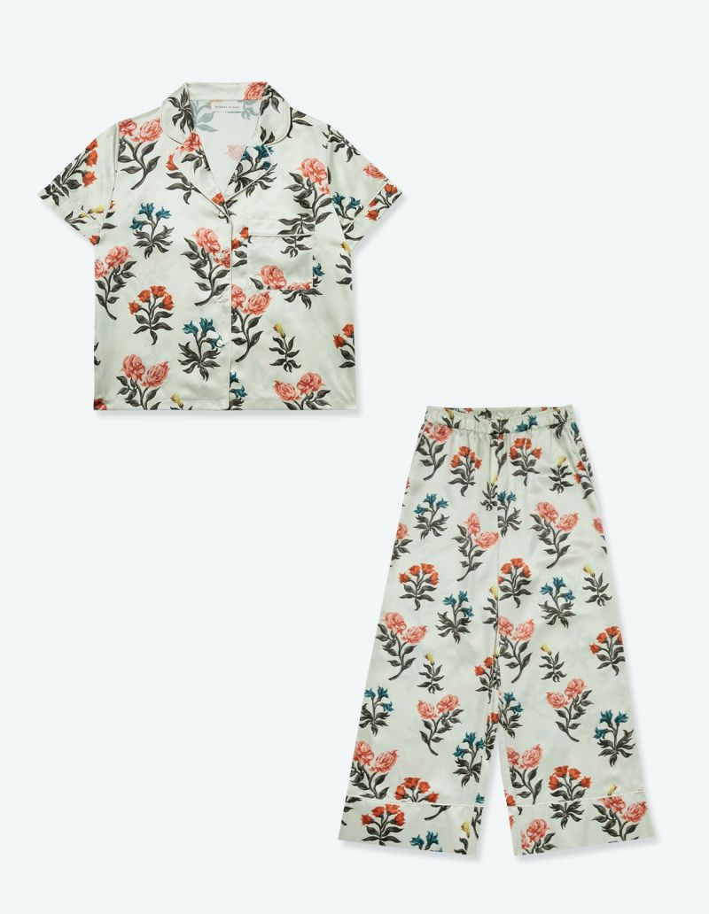 フローラフラワープリントパジャマ 半袖ロングパンツ