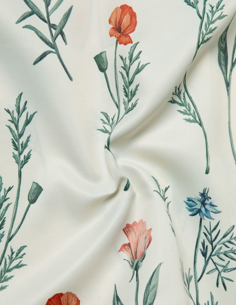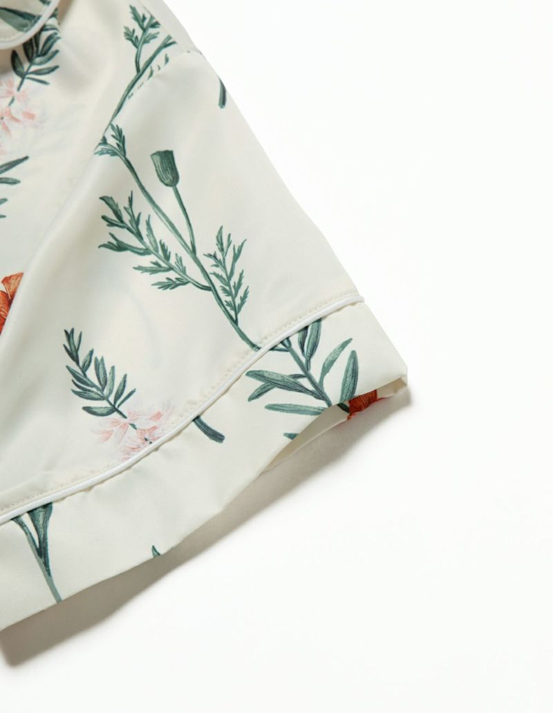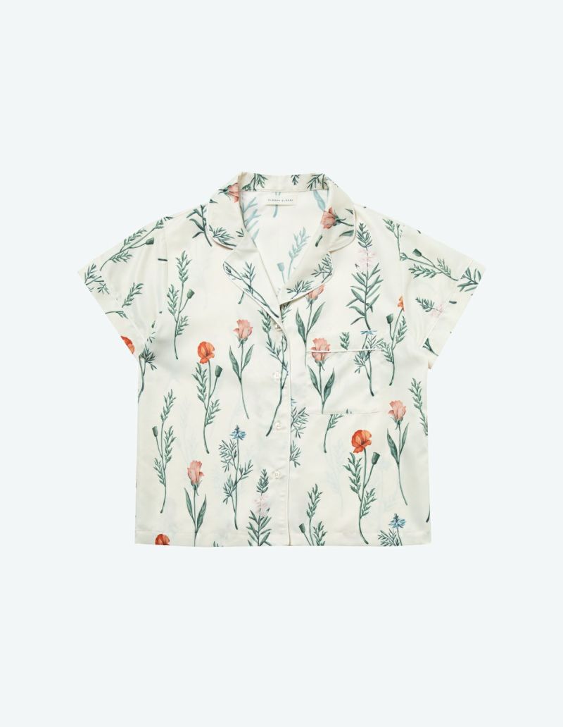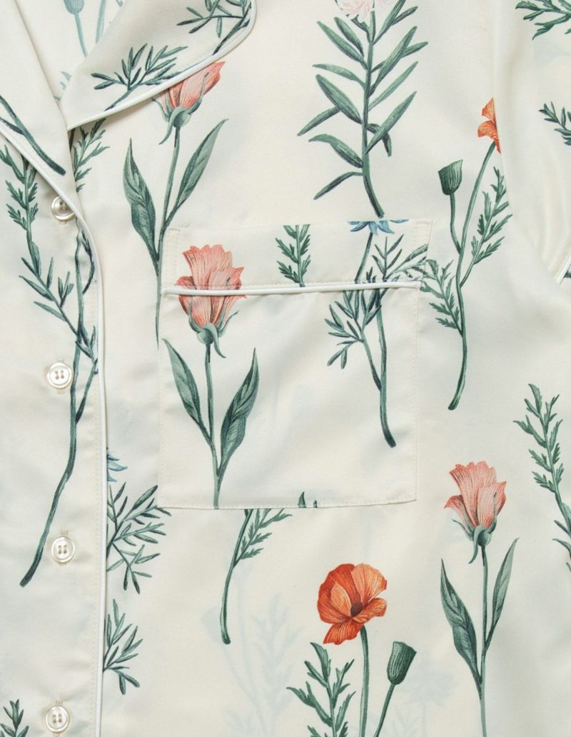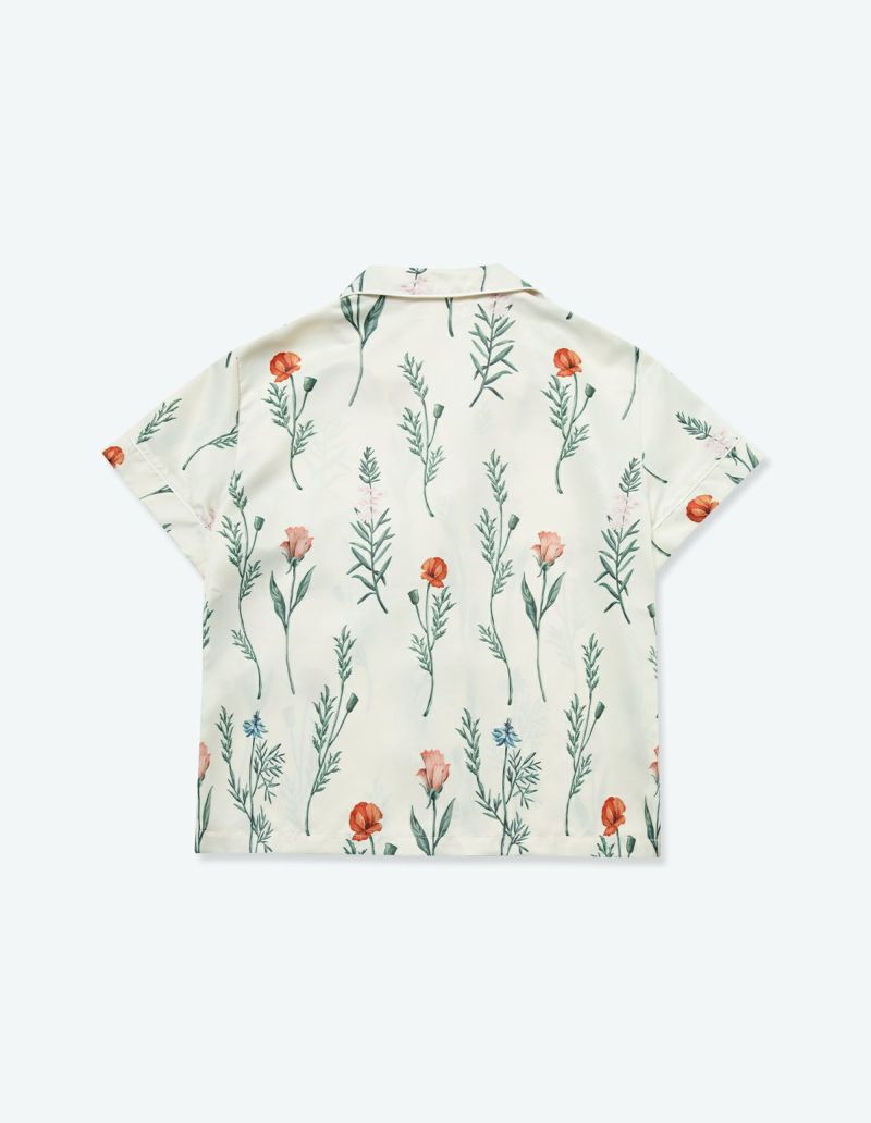 ゆらゆらとたゆたう野の花広がる理想の花園メドウガーデン。風にそよぐ草花の中を纏う牧歌的な情景を落とし込んだフラワープリントパジャマ。微光沢のサテン生地がさらりとした肌触りで、シーズンレスに着用可能な素材です。おそろいで着られるペアパジャマとして誕生日のギフト、結婚祝いなど様々なお祝いシーンにもおすすめ。