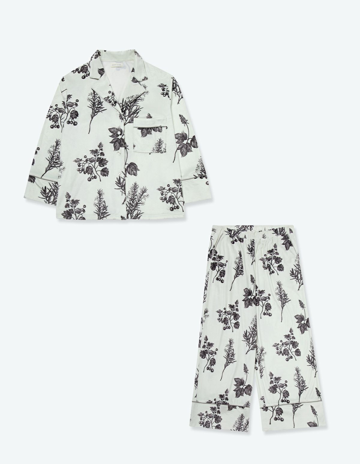 【ペア展開あり】サテンフラワーパジャマ/長袖ロングパンツ【BOX付】