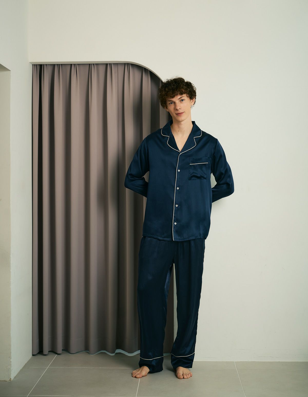 【ペア展開あり】シルクパジャマ長袖&ロングパンツ/セット【BOX付】(縫製リニューアル)