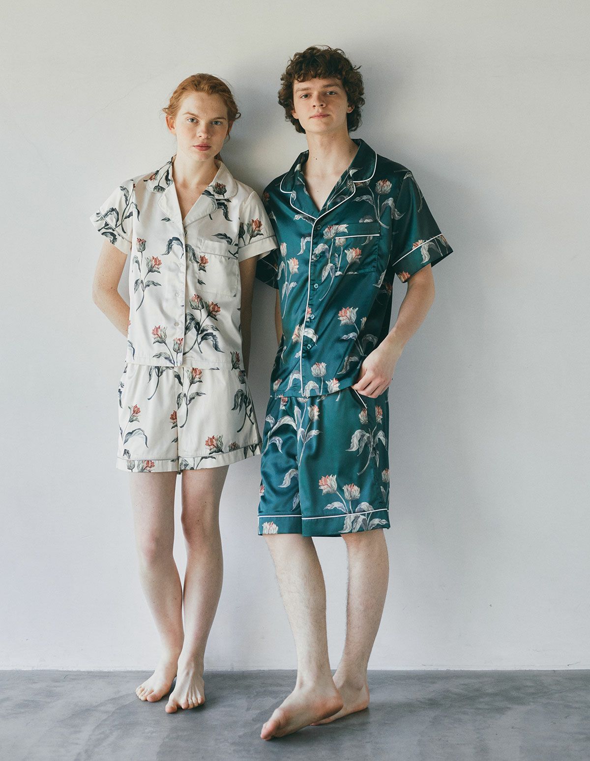 サテンフラワーパジャマ/半袖セット【ペアパジャマ/限定BOX付】