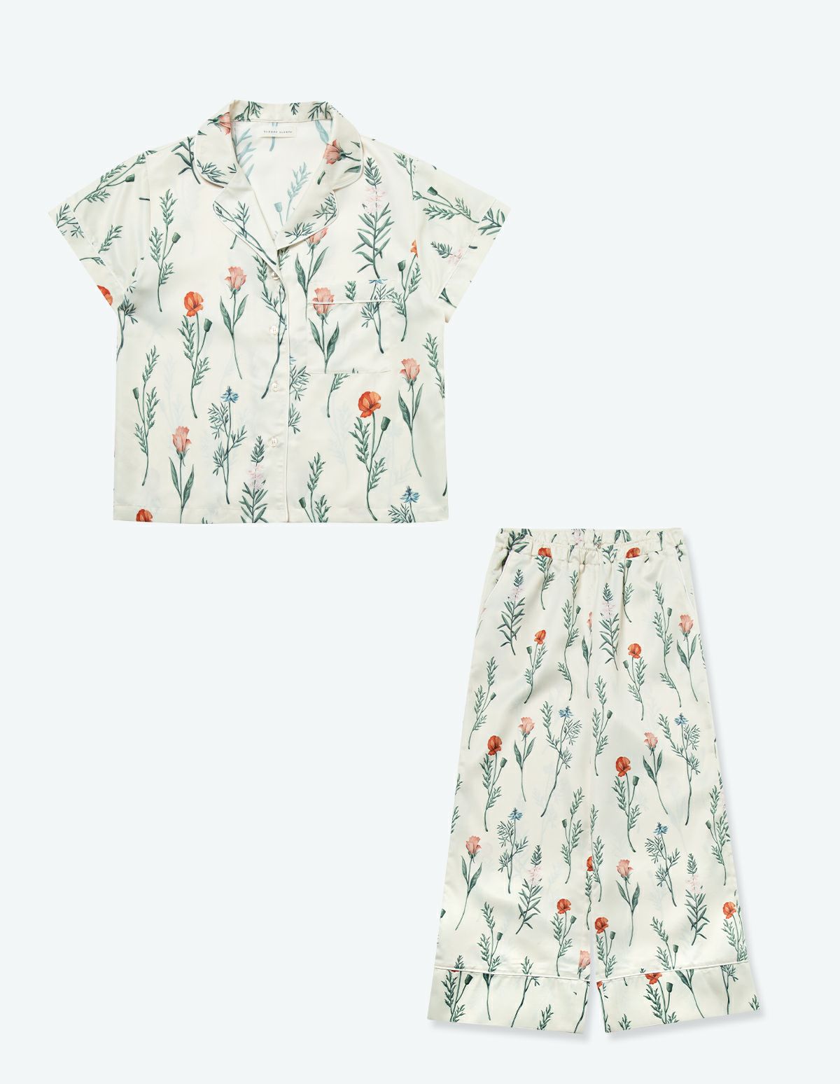 フローラフラワープリントパジャマ 半袖ロングパンツ