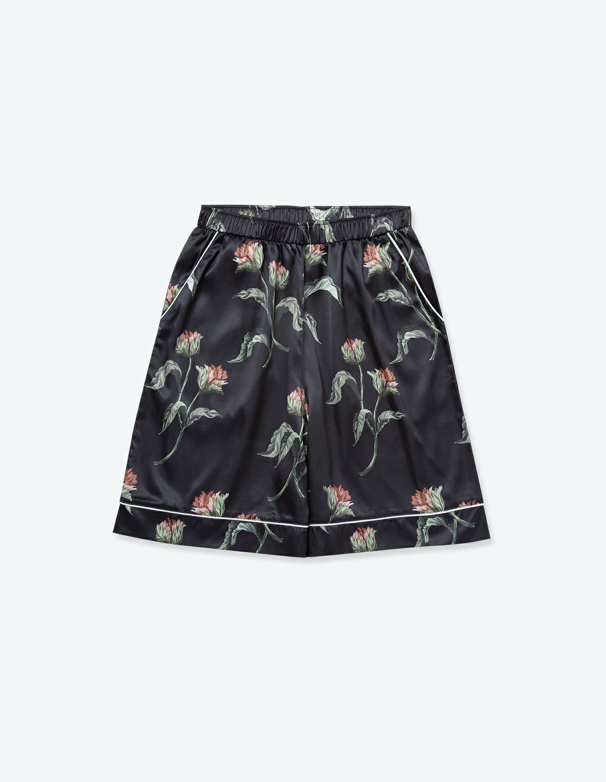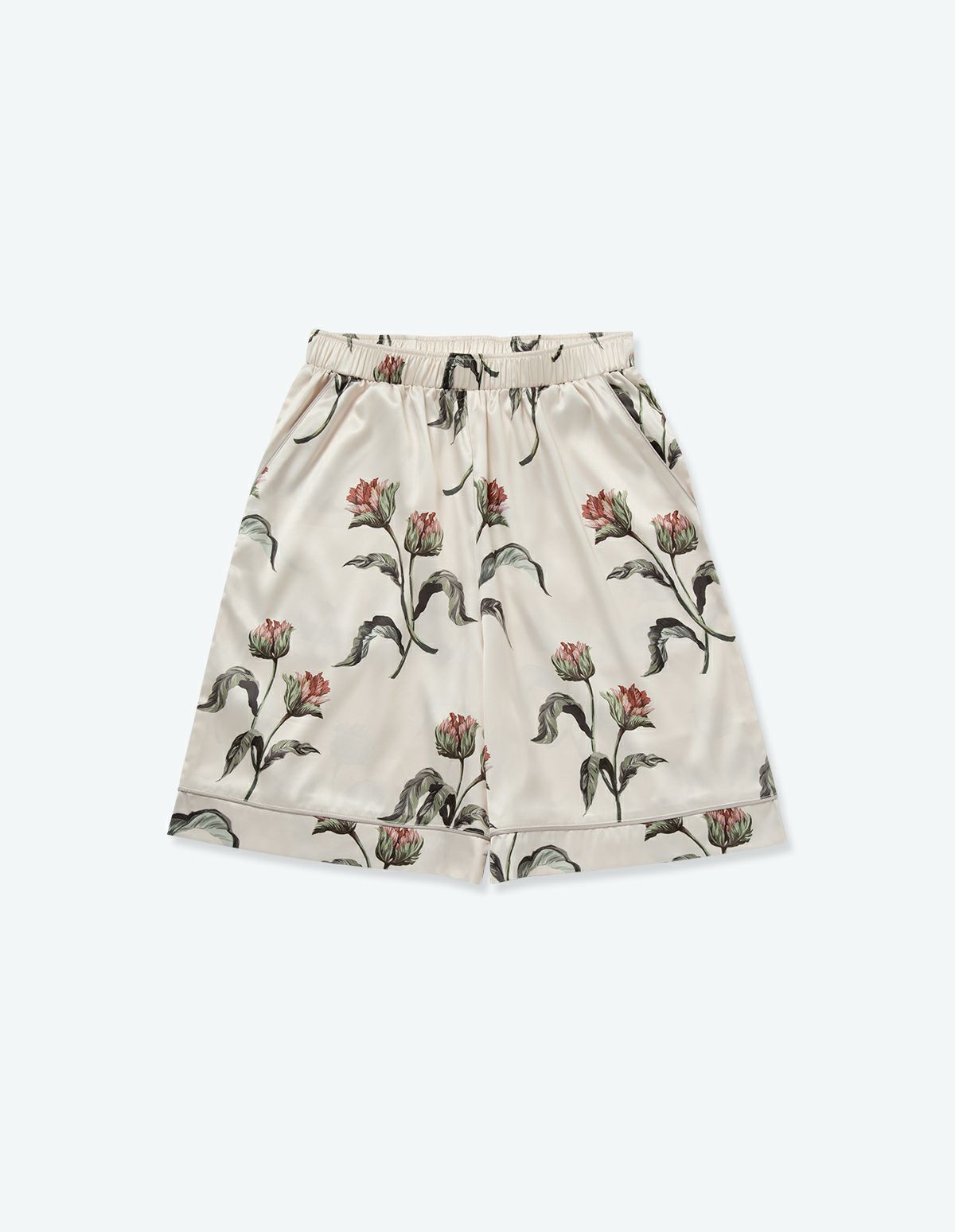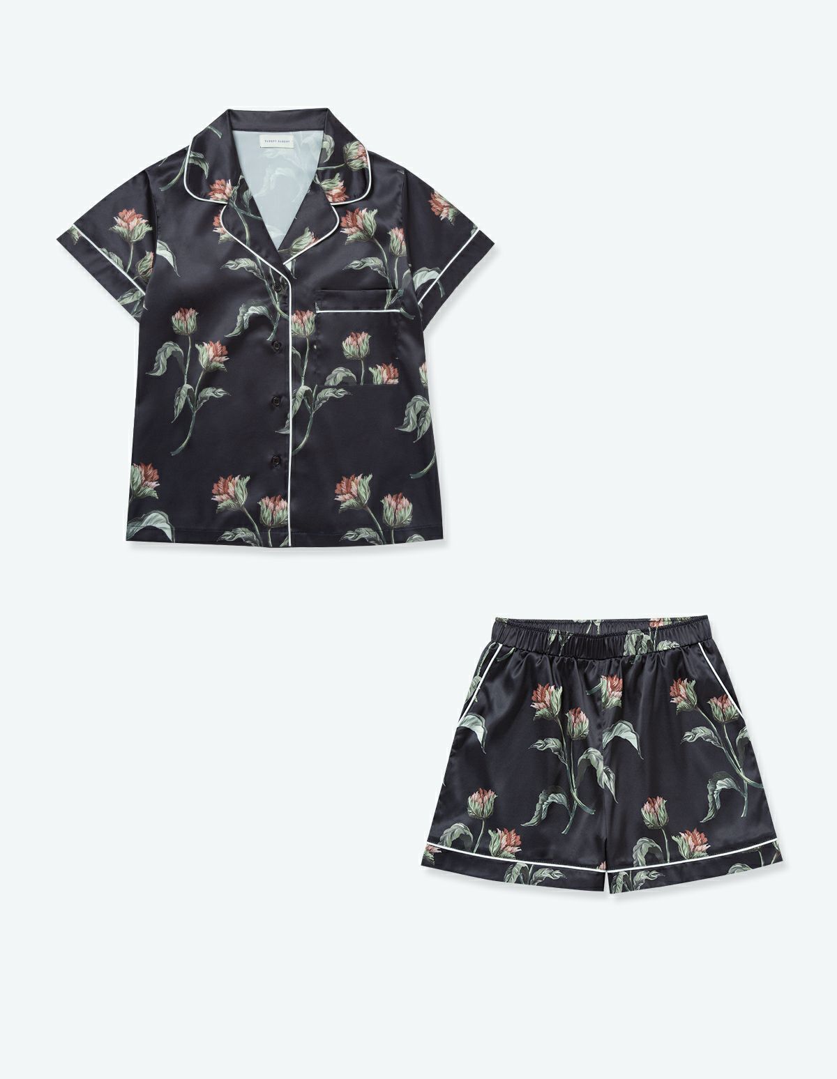【ペア展開あり】サテンフラワーパジャマ/半袖ショートパンツ【BOX付】
