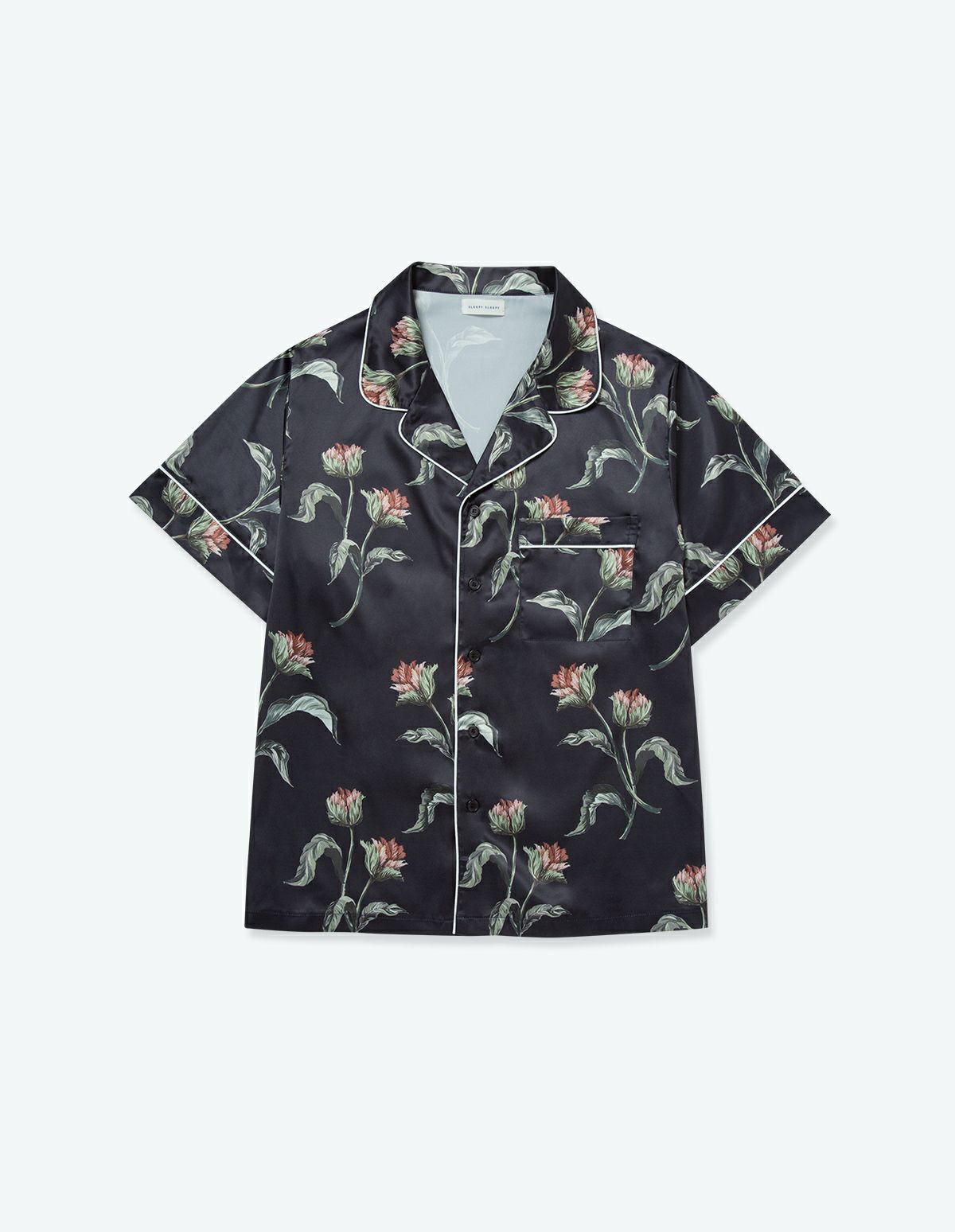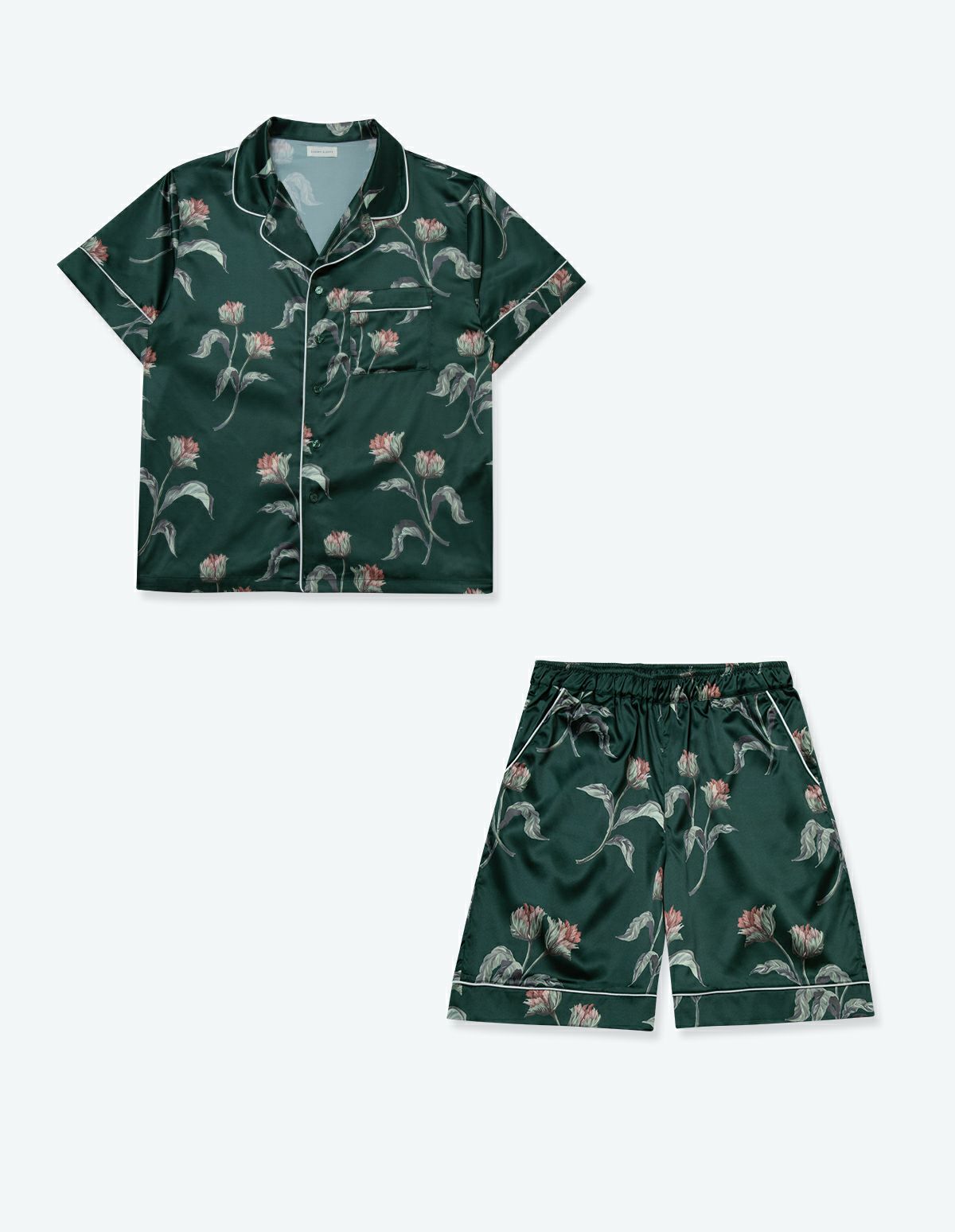 【ペア展開あり】メンズサテンフラワーパジャマ/半袖ハーフパンツ【メンズ/BOX付】