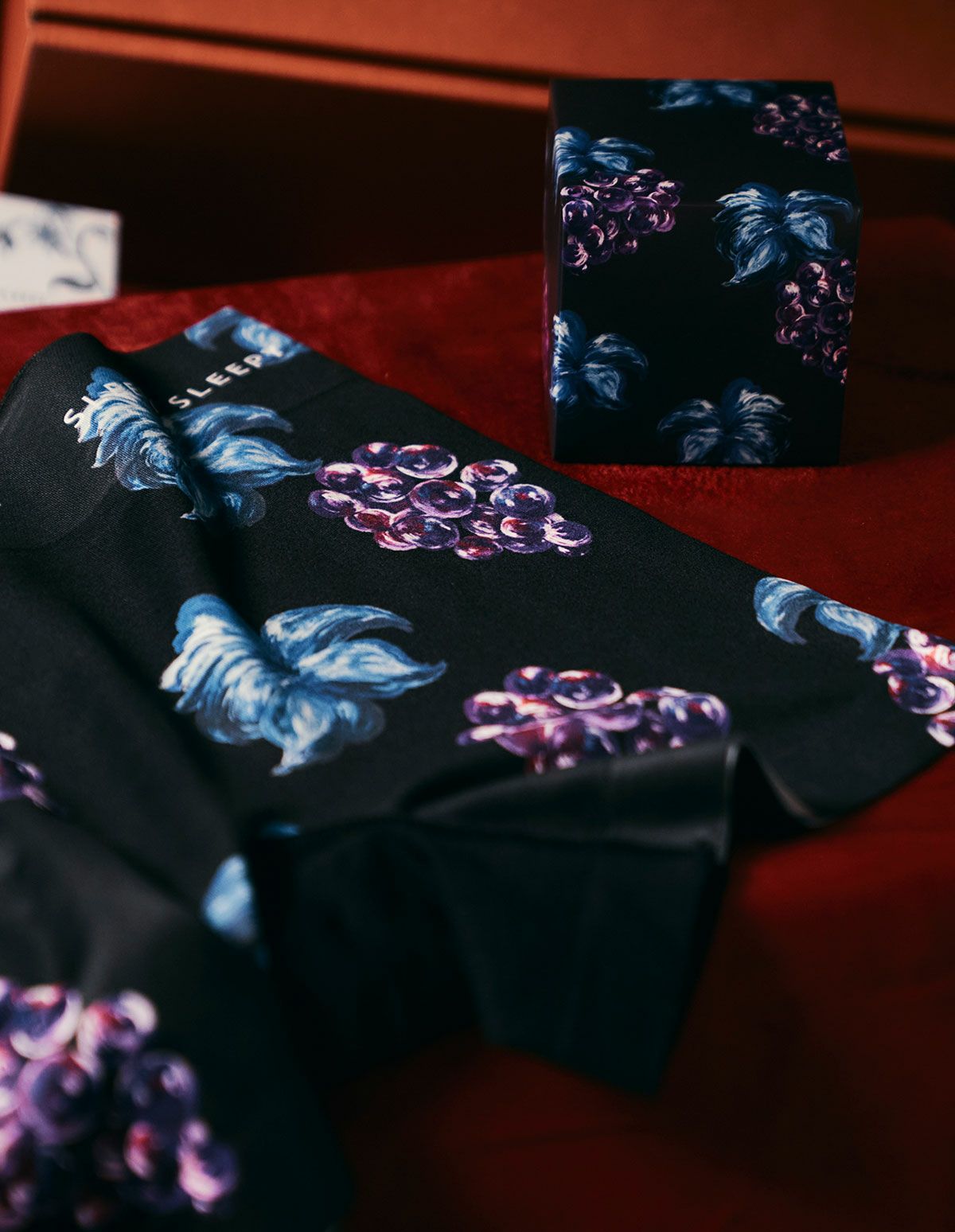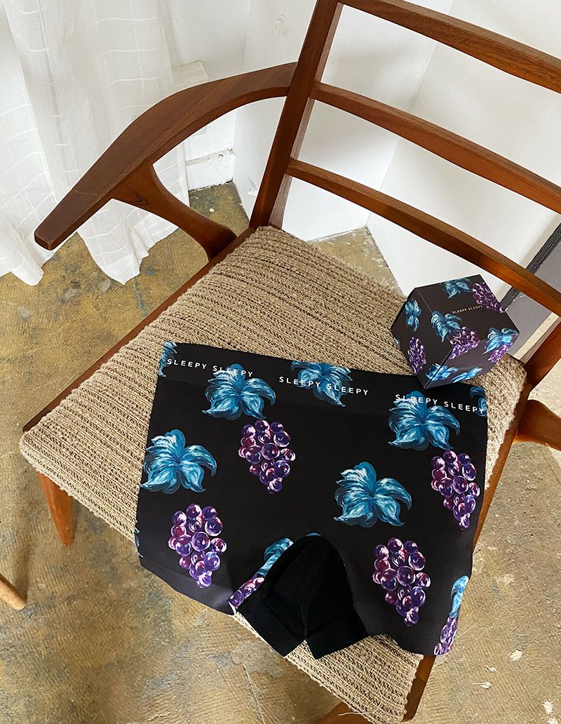 オイルペイントのタッチが特徴的なグレープツリープリントのボクサーパンツ。さらりとした肌触りをキープする速乾性と、フィット感と伸縮性に優れたポリエステルタイプ。キューブ型パッケージ付きですぐに贈れるギフトとしてもおすすめです。