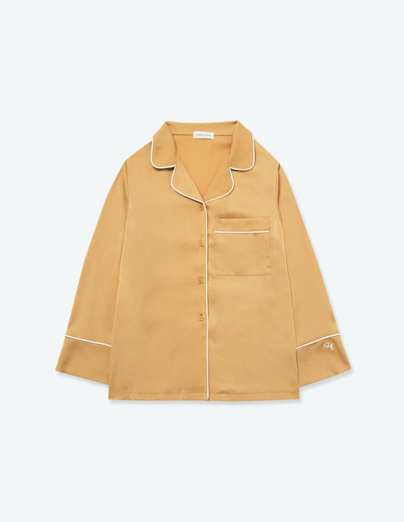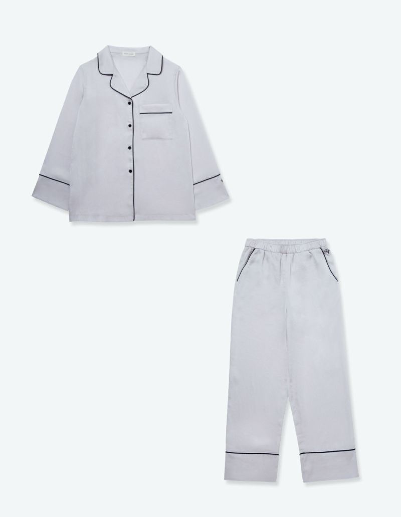 高級感のある微光沢のサテンを使用したパジャマセット。密に織られた生地で型崩れしにくく、長い間ご愛用いただけるシーズンレスなパジャマ。胸元のひらきすぎず、かつ抜け感を残した襟元や、丈感はゆったりとさせちょうどいいサイズ設計を追求。 幅広の切り替えと落ち感のある風合い柔らかな生地のかけ合わせですっきりとしたシルエットに。ニュアンスカラーのパッケージ付きですぐに贈れるギフトとしてもおすすめです。 ※2022年11月4日より、サイズをリニューアルいたしました。以前の商品サイズとは異なりますので、寸法をご確認ください。