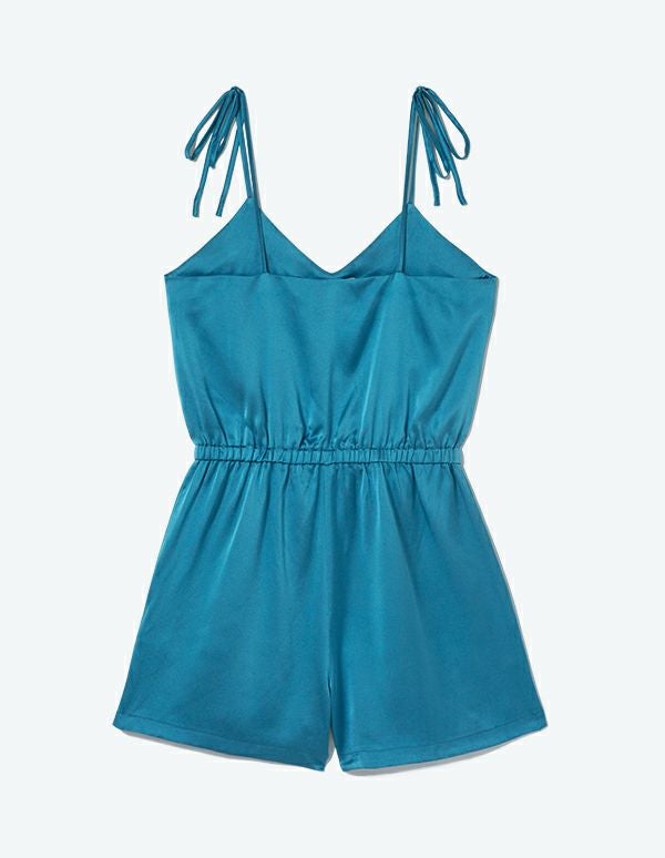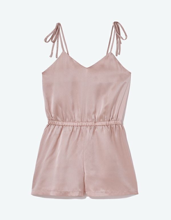 ゆったり着られて大人っぽいシルク素材のロンパース