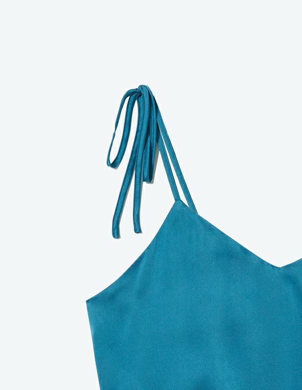 SLEEPY SLEEPY定番のシルク生地を使用したラグジュアリーなロンパースは、インナーまでこだわりたい大人の女性にふさわしい逸品。ヒップはゆったりとさせつつ、全体はすっきりとしたシルエットでスタイル良く着られます。ストラップの結び方次第でバックをクロスにするなどアレンジも楽しめるのもポイントです。上品なコバルトブルーとダークピンクの2色展開です。持ち運びに便利なサテン生地を使ったグレーの巾着付き。円筒BOXに入っているので、ギフトにもご利用いただけます。
