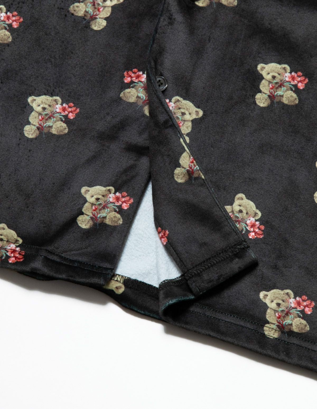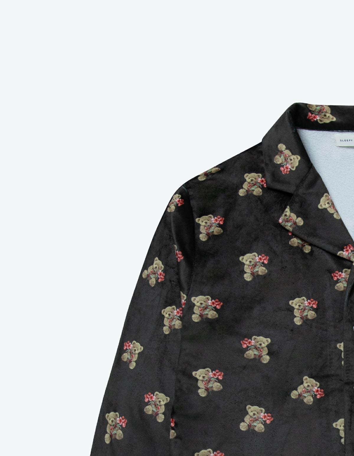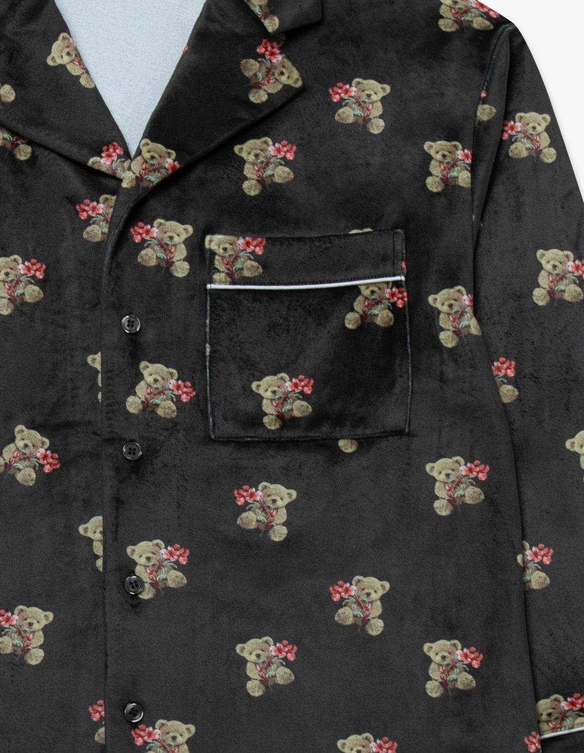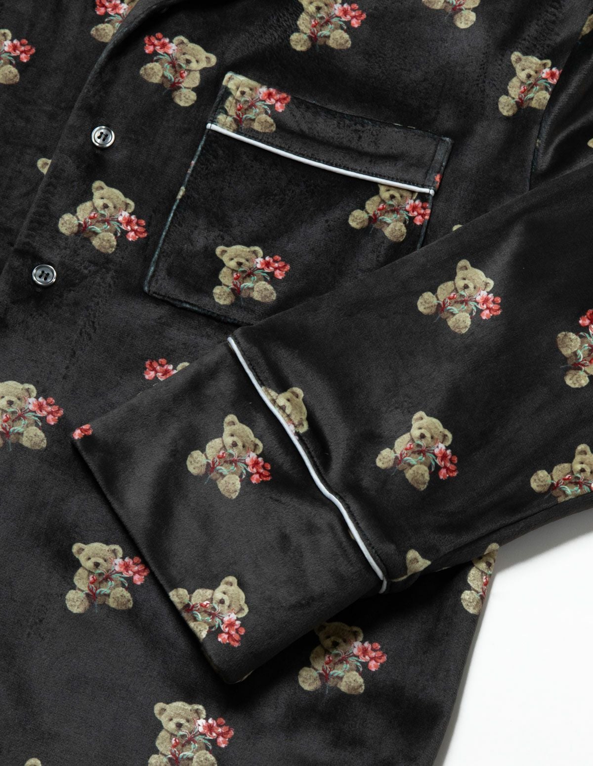 メンズベアフラワーベロアパジャマ 長袖ロングパンツ