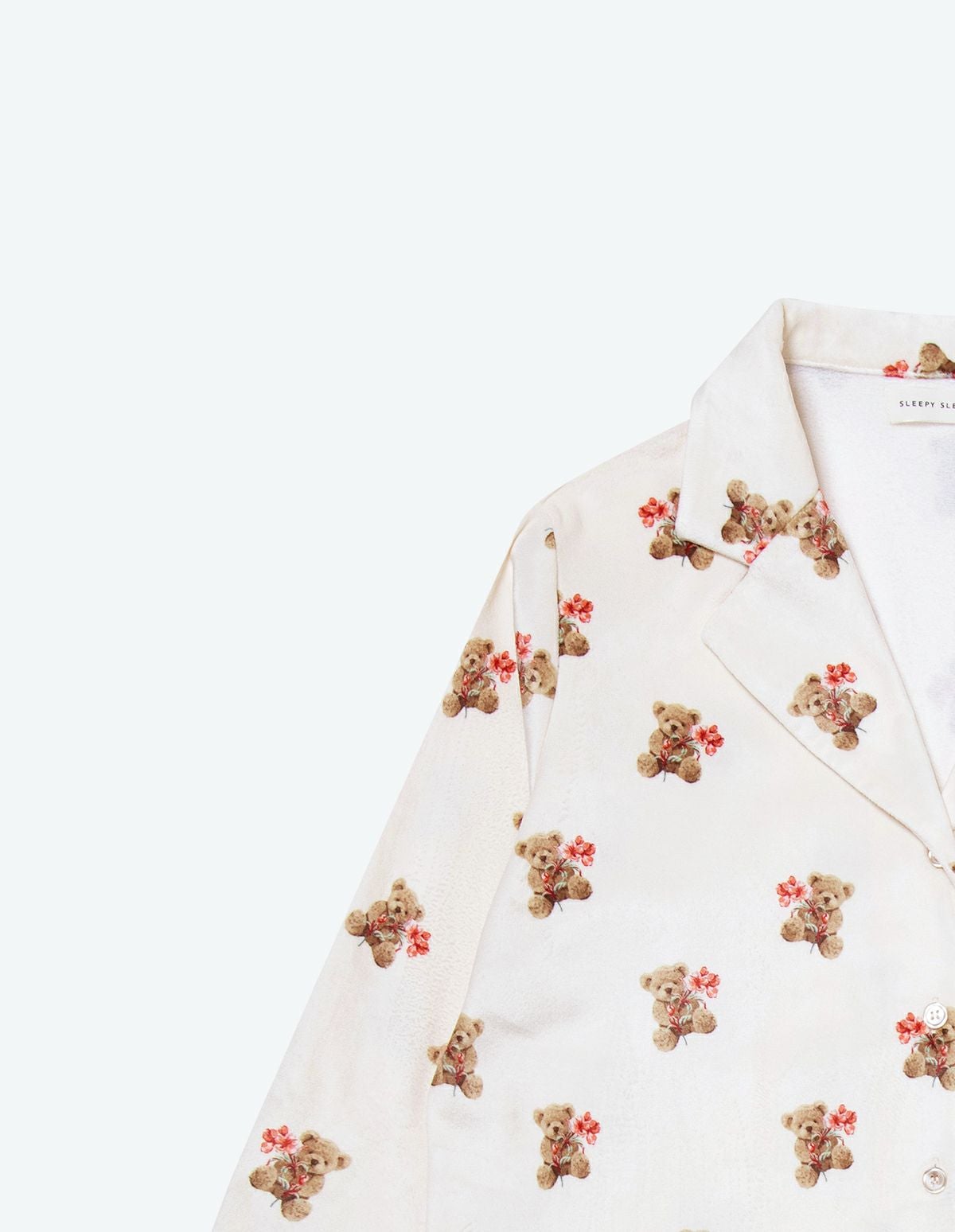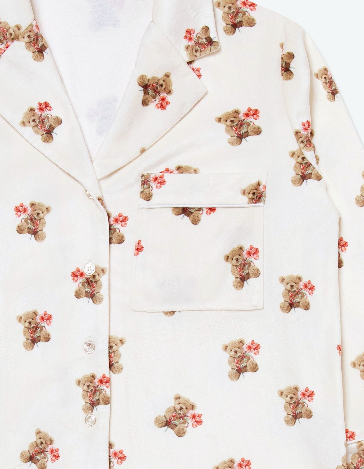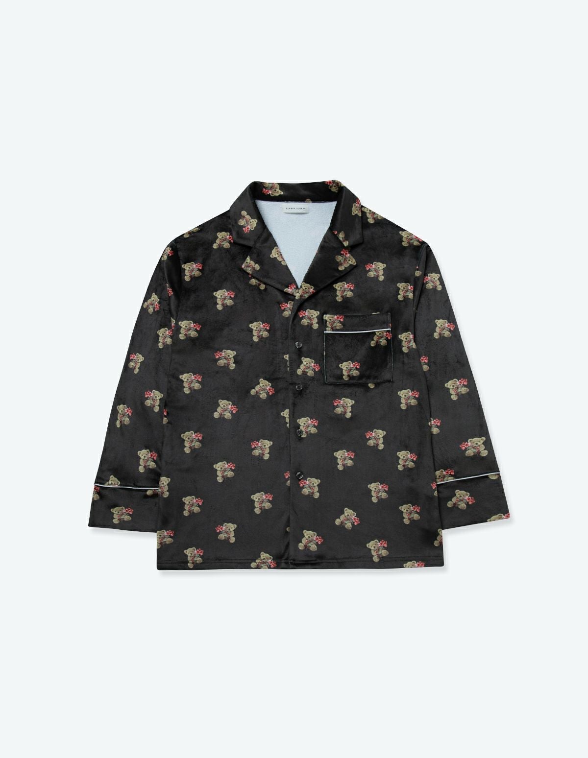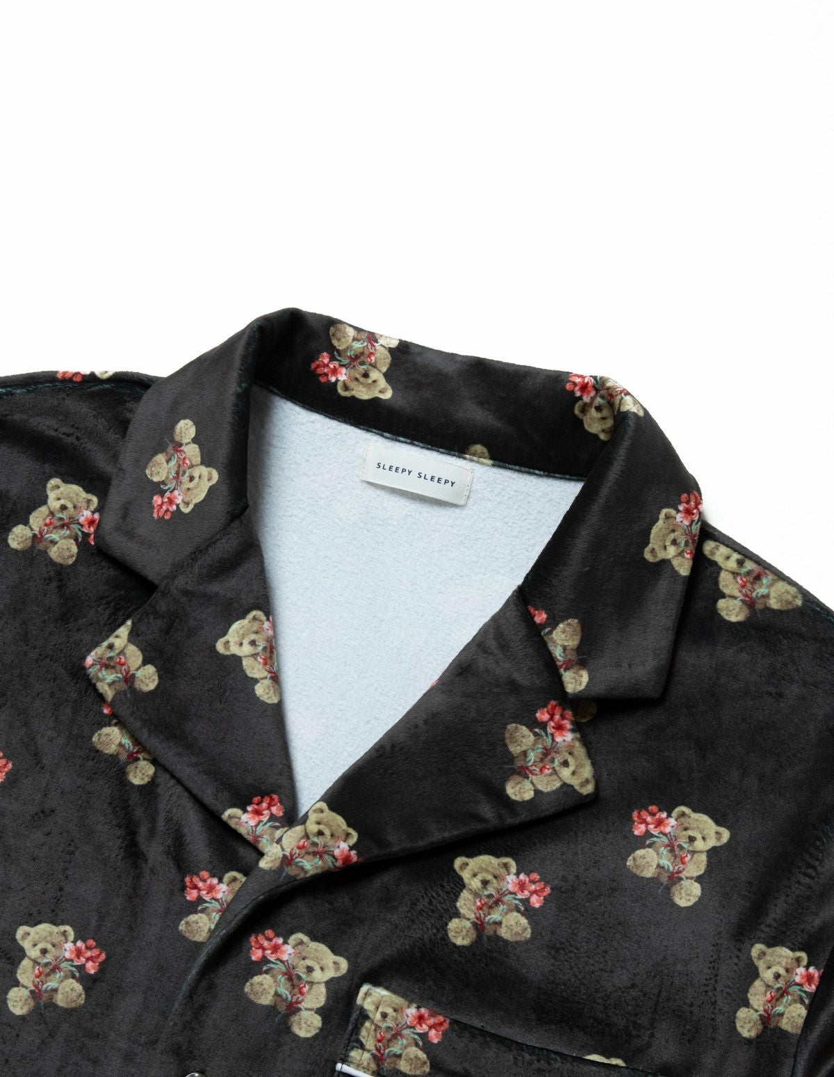 メンズベアフラワーベロアパジャマ 長袖ロングパンツ