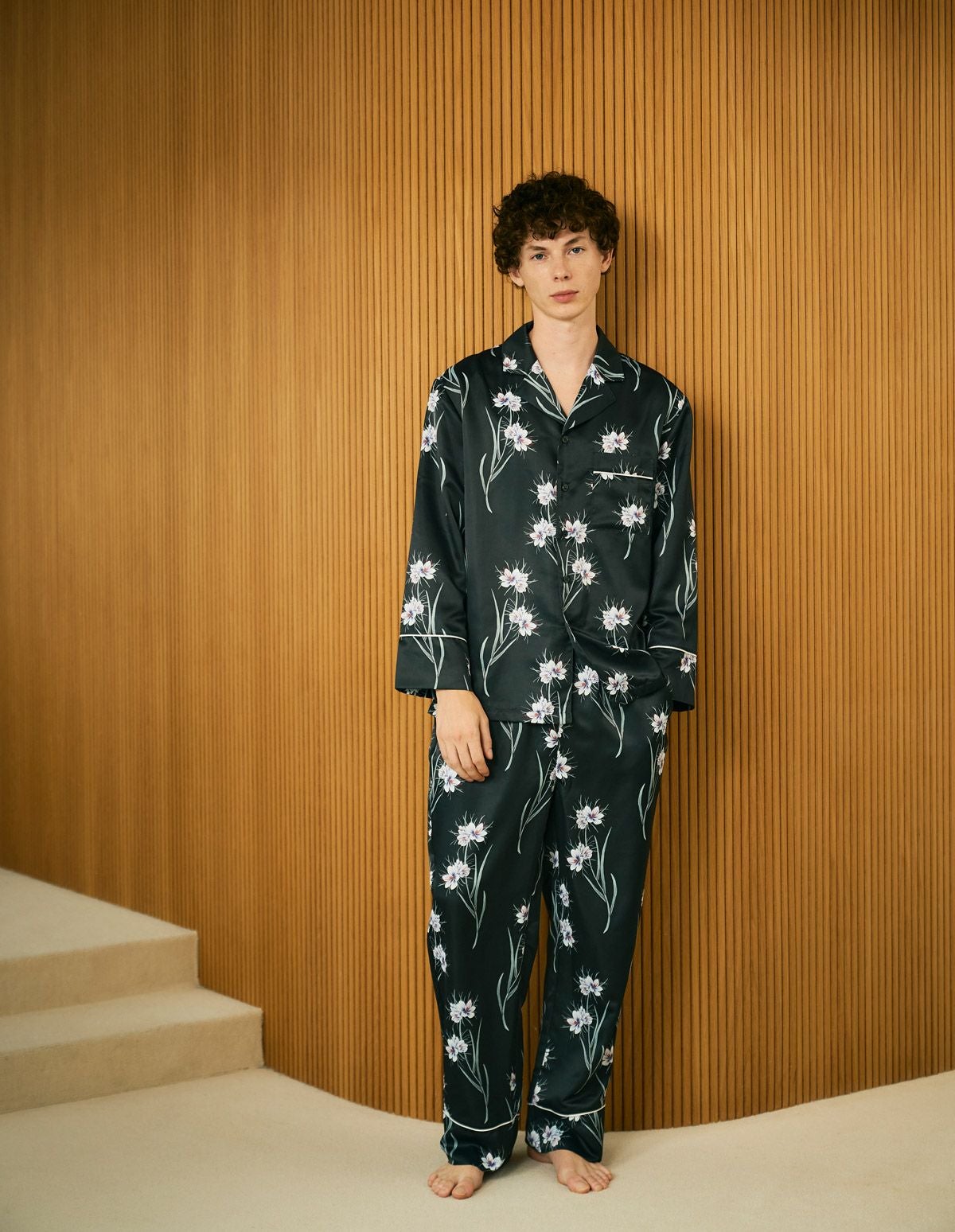 メンズヒーリングフラワーパジャマ 長袖ロングパンツ