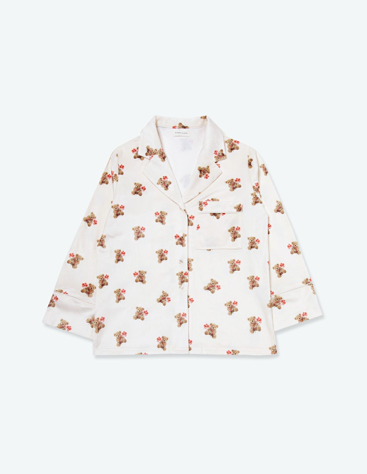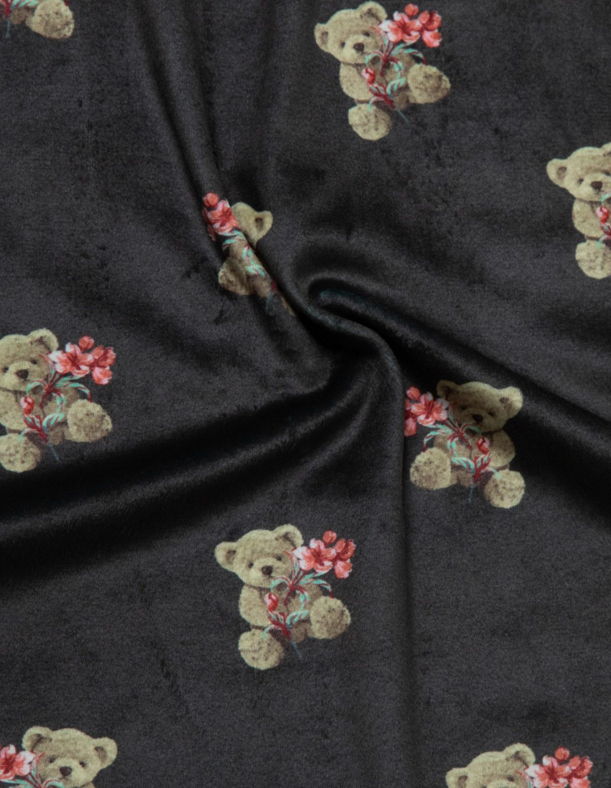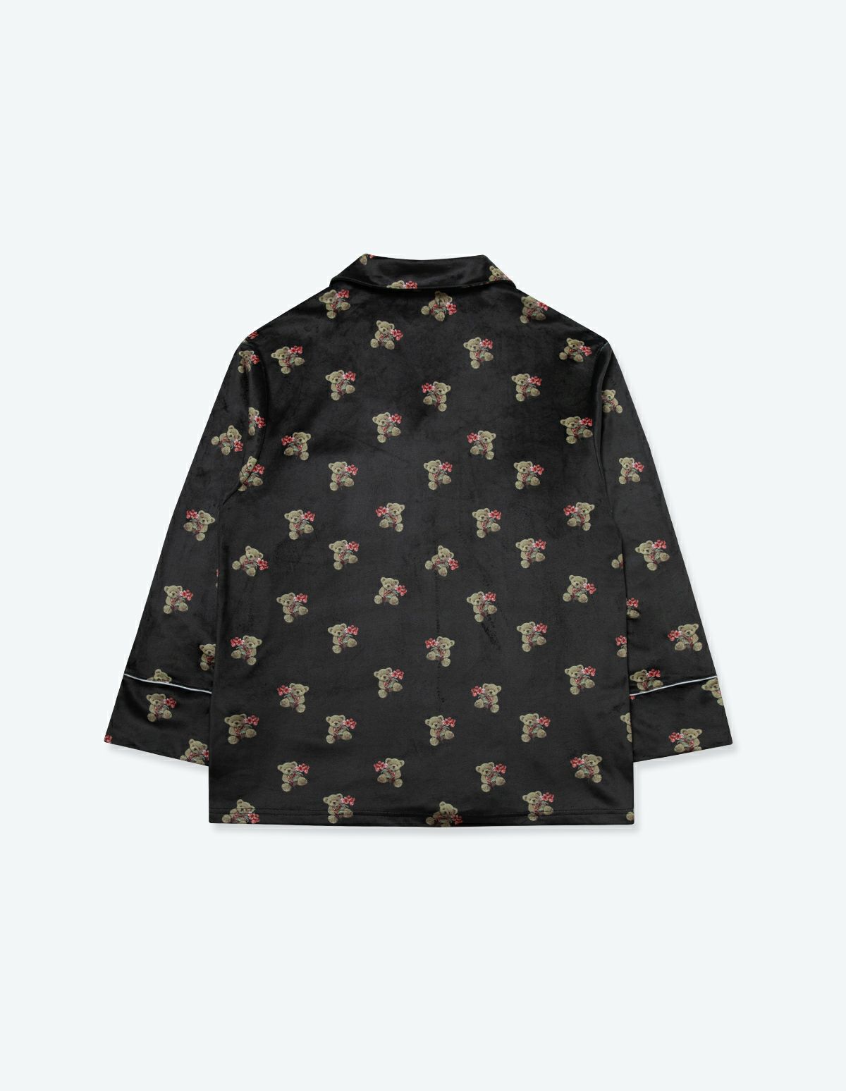 メンズベアフラワーベロアパジャマ 長袖ロングパンツ